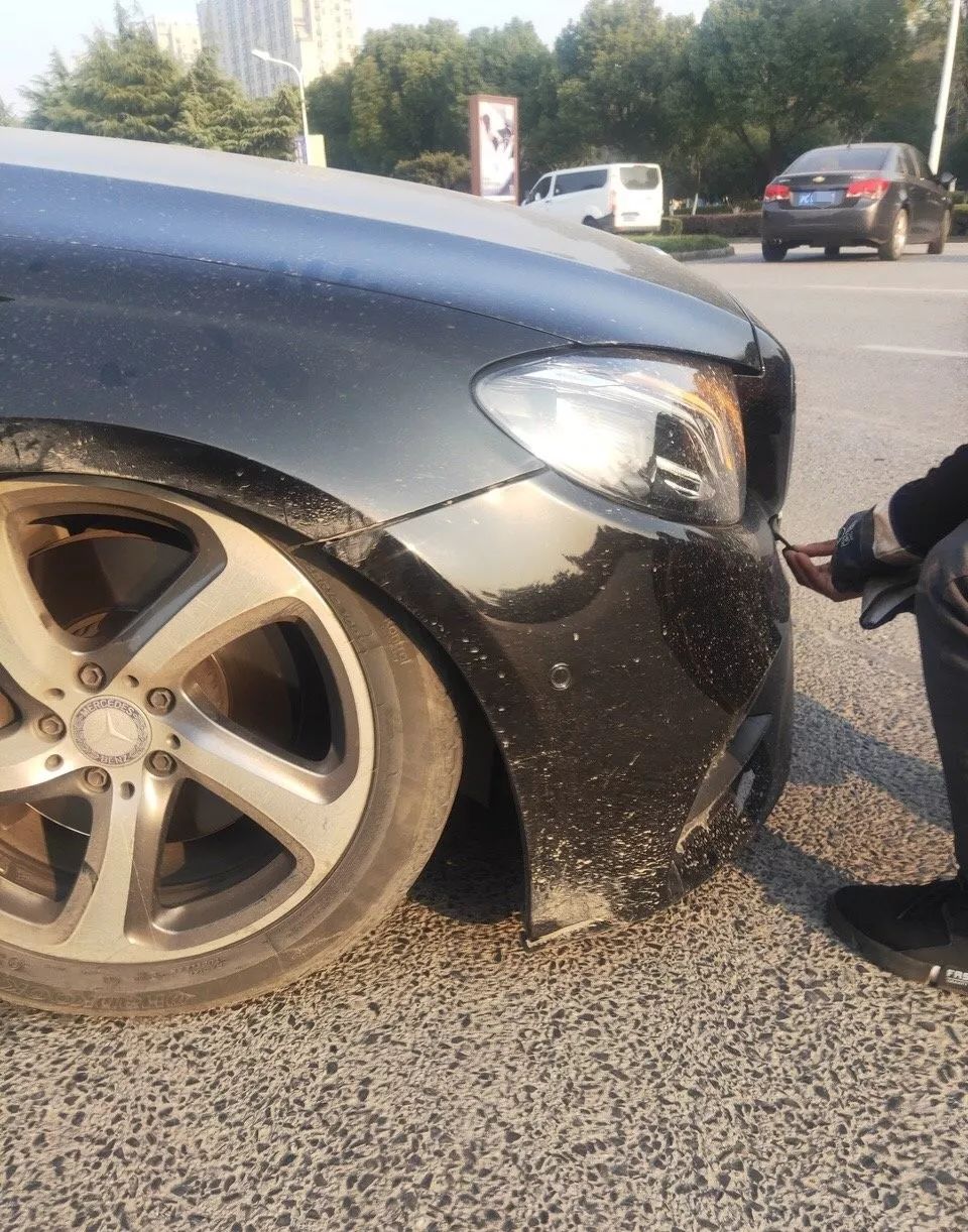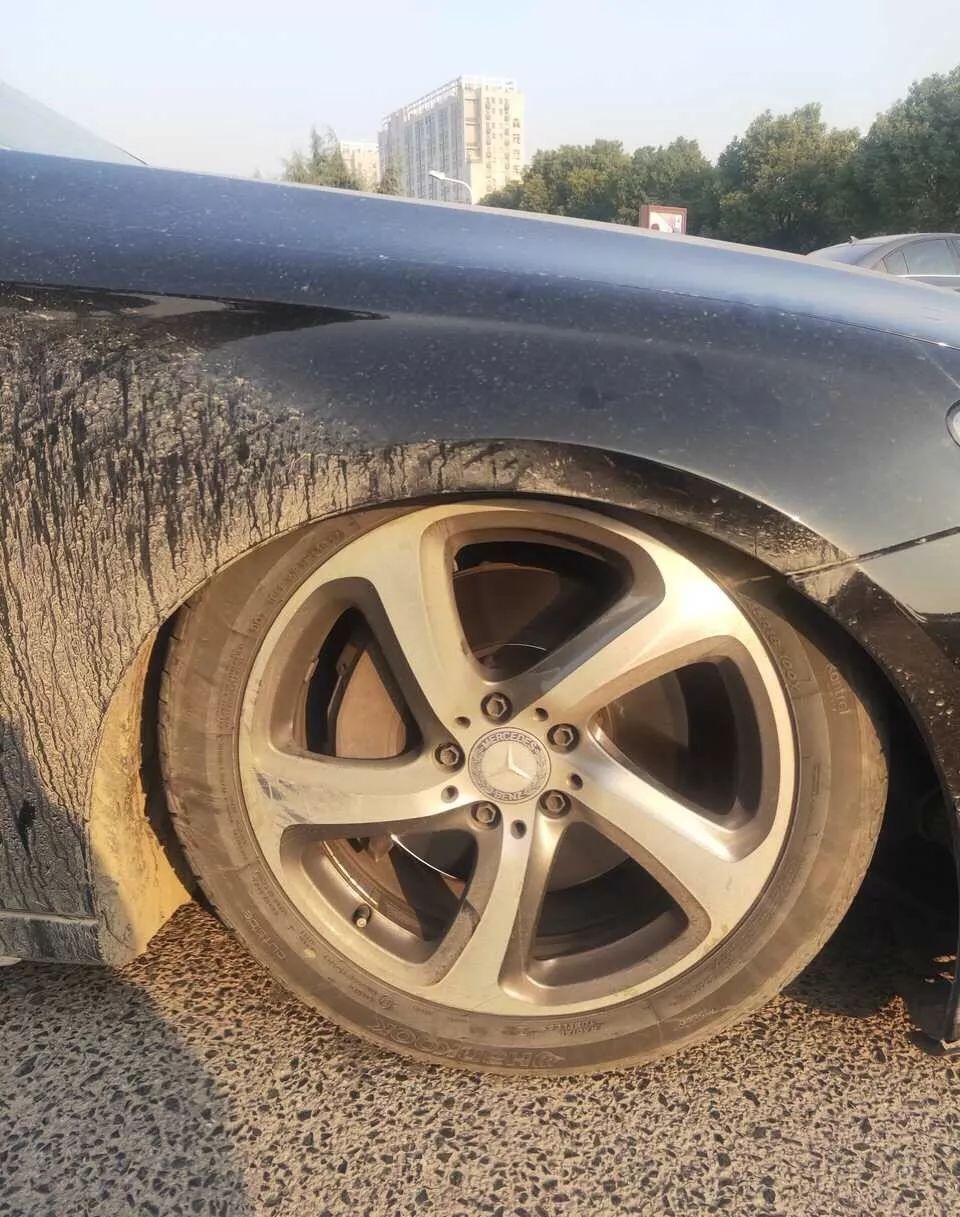 有业内人士近日继续曝光,奔驰E级轿车又挂了一台,前减震器“断裂”。